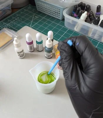 Resin swirls with color, creating a one-of-a-kind cosmic brew ready for casting.